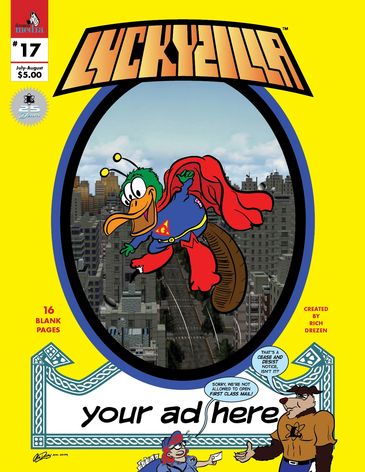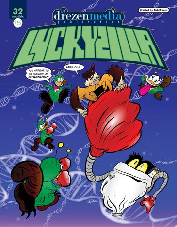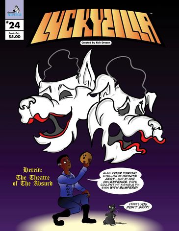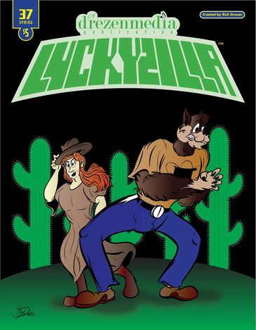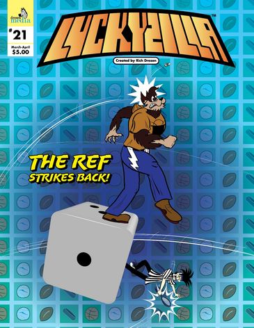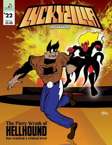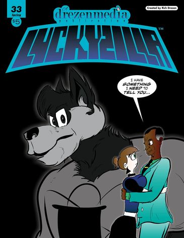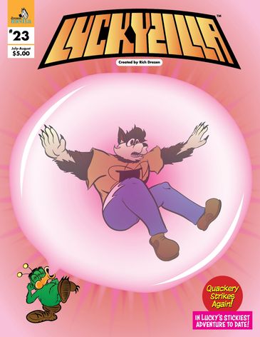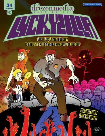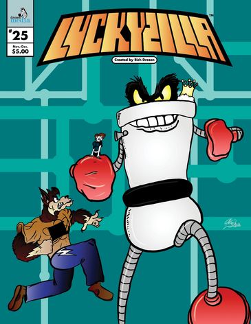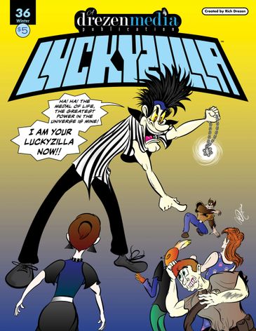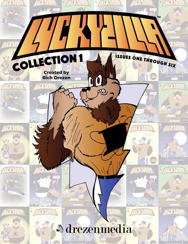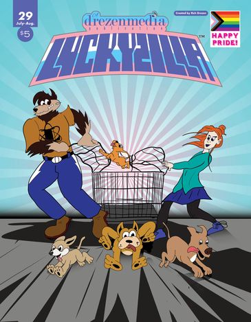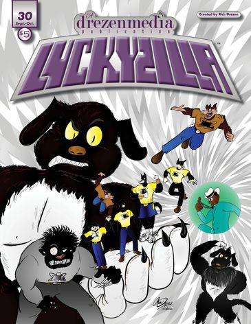 These humble beginnings include The Dog Knight's earliest encounters with The Ref, Quackery, Hellhound and Royal Flush. In addition to Luckyzilla #'s 1-6, Drezen Media is issuing a hearty helping of Lucky webcomics which haven't seen print until now.