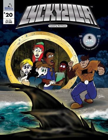 It is said that in your dire hour of need that you’ll find out who your real friends are. Lucky and friends are about to experience that with total strangers as they band together and avoid becoming devoured by a demonic beast, possessed by the spirit of a mad dictator in “The Curse of The Golden Shark”. This longer-than-normal Dog Knight adventure celebrates Luckyzilla’s 25th anniversary.